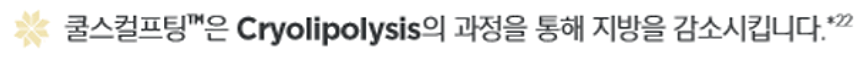 クールスカルプティングは非侵襲的な方法で皮下脂肪層を減らす施術です。制御された冷気を利用して運動だけでは落ちにくい皮下脂肪細胞を除去します。冷凍された脂肪細胞は時間が経つにつれて死滅し、体内で自然に代謝され除去されます。クールスカルプティング施術後6ヶ月以内に27%程度の脂肪を除去できます。