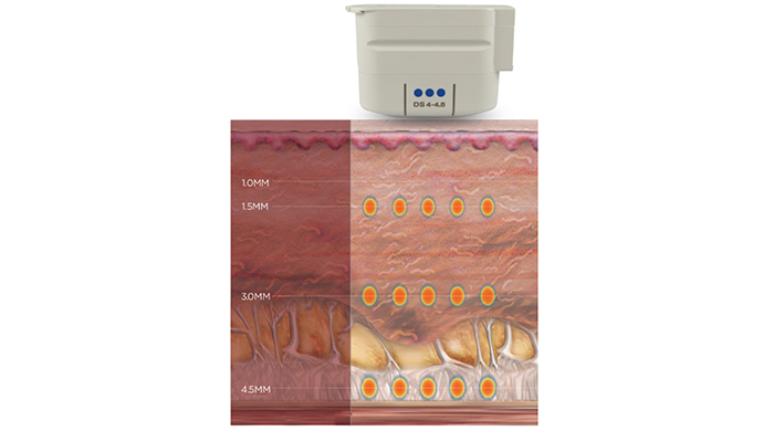皮膚表面には損傷を与えず、高強度集中超音波エネルギーが表皮、真皮だけでなく、皮膚の奥深くSMAS層まで到達し、切開過程なしで顔全体のしわおよびリフティング改善効果を高める施術であり、手術方式とは異なり傷跡が残らず、回復期間はほとんど必要ありません。