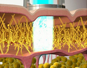 真皮層に高周波を照射し、皮膚表面の温度を43度まで徐々に引き上げることで、この深部熱がコラーゲンとエラスチンの生成を促進し、肌の弾力を改善しタイトニング効果をもたらします。また、顔全体の血液循環とリンパ循環の改善により血色が良くなる効果もあります。